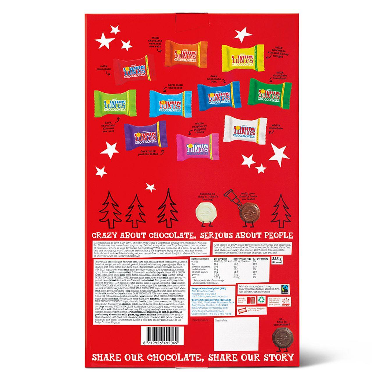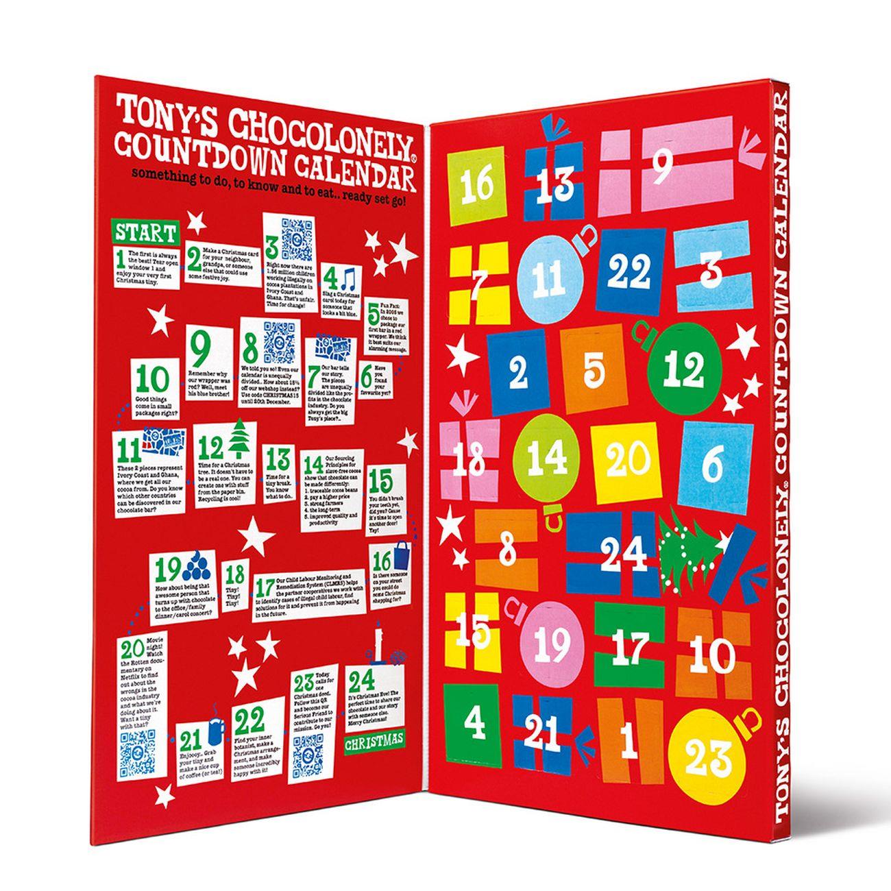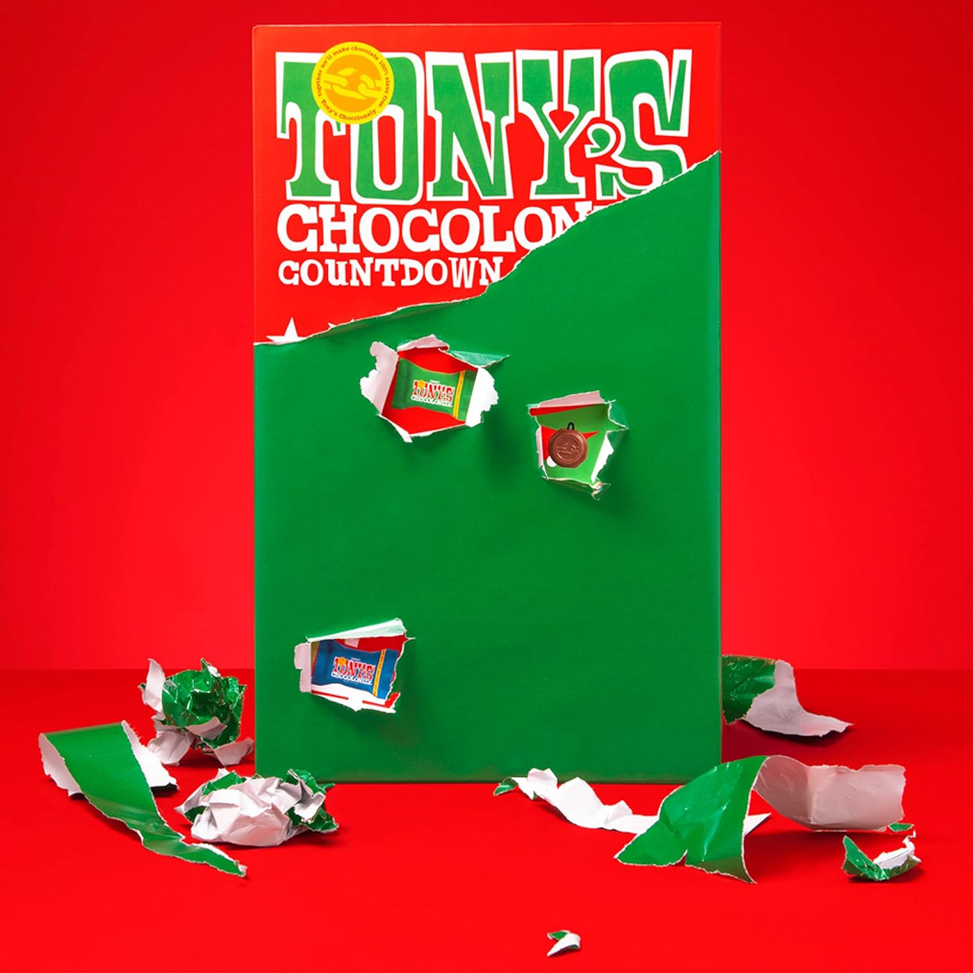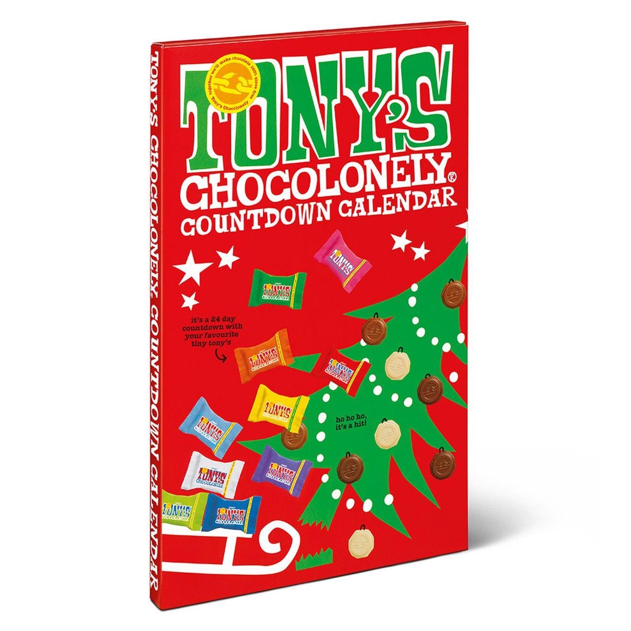 A: It includes 25 windows filled with 10 different Tony’s chocolate flavours to enjoy through December.