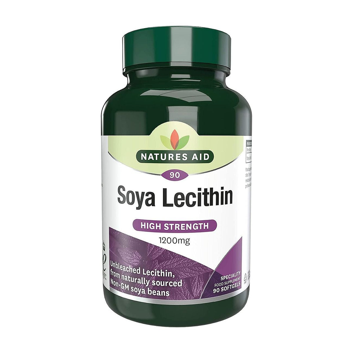 Natures Aid High Strength Lecithin Capsules provides 1200mg unbleached Lecithin, from naturally sourced Non-GM Soya Beans.
