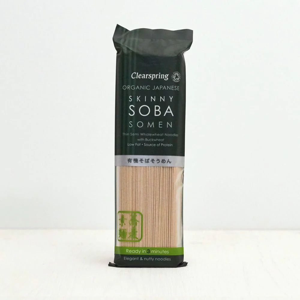 Quick to cook and delicious in flavour, Organic Skinny Soba Somen Noodles are satisfying and versatile. Artisan family producers slowly air dry and mature these noodles to concentrate their flavour.