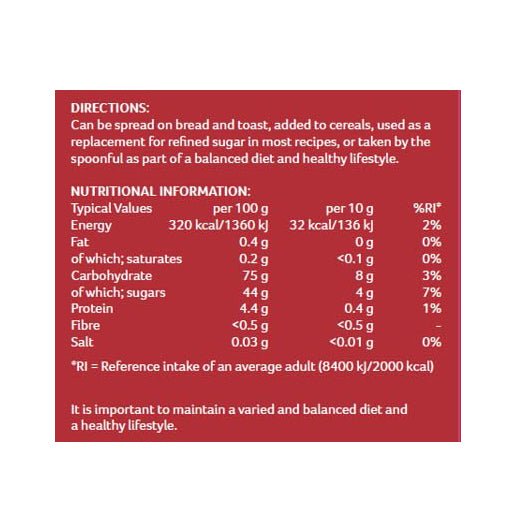 Can be used as a replacement for refined sugar in bread, cakes, and general cooking, or taken by the spoonful as part of a balanced diet and healthy lifestyle.