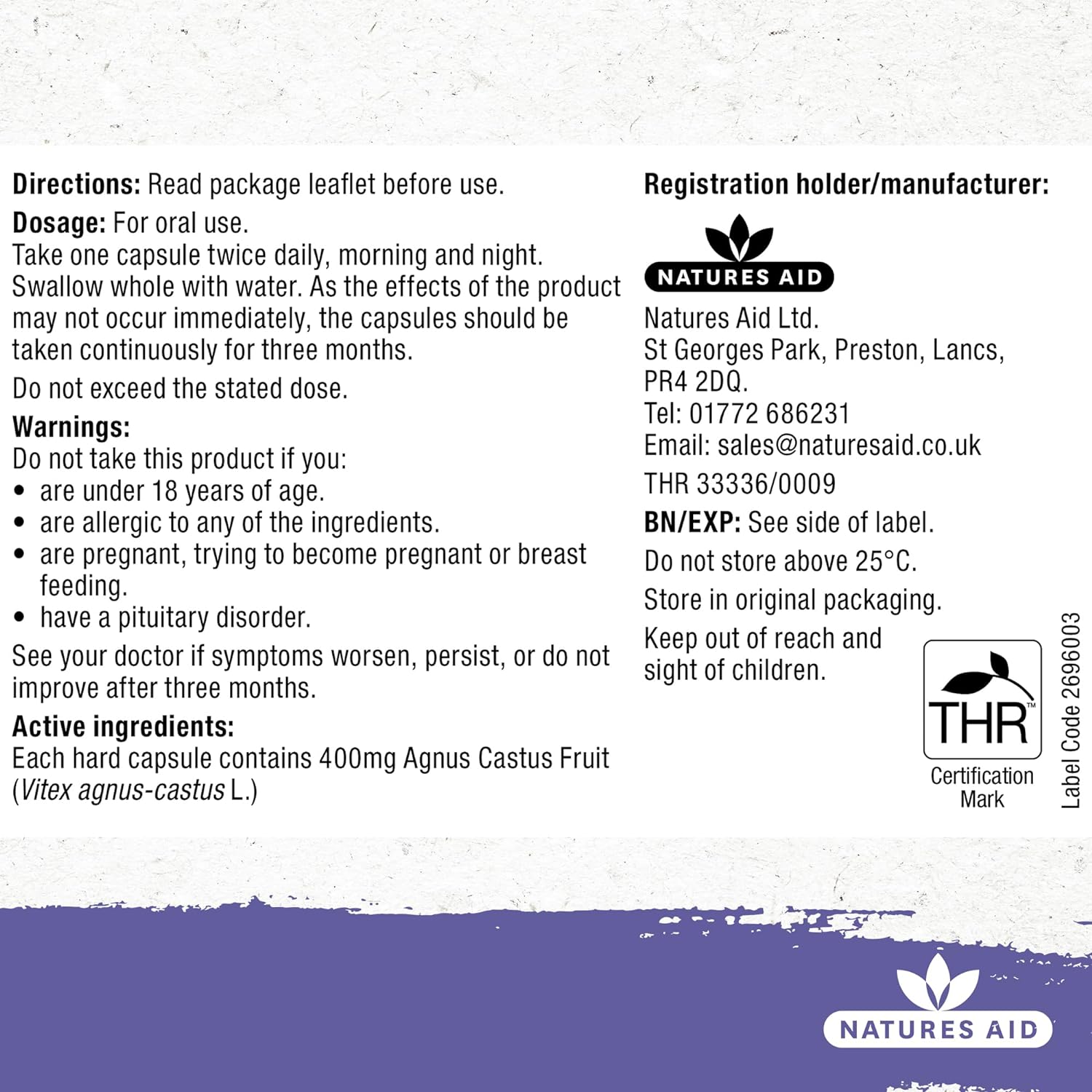 Ingredients: Each hard capsule contains 400mg Agnus Castus fruit (Vitex agnus-castus L.)